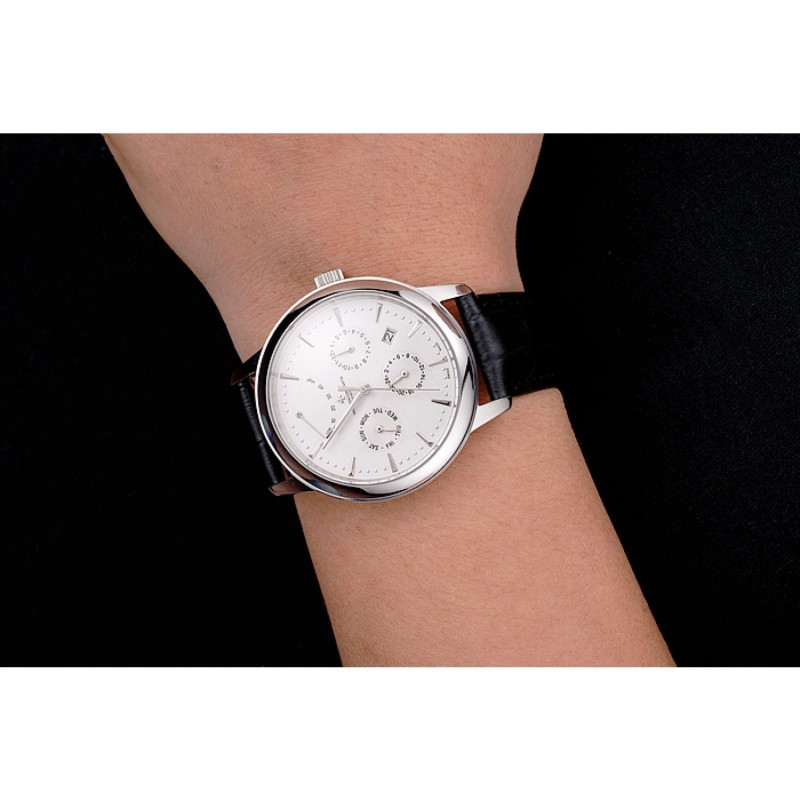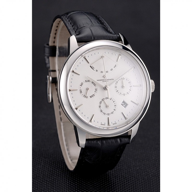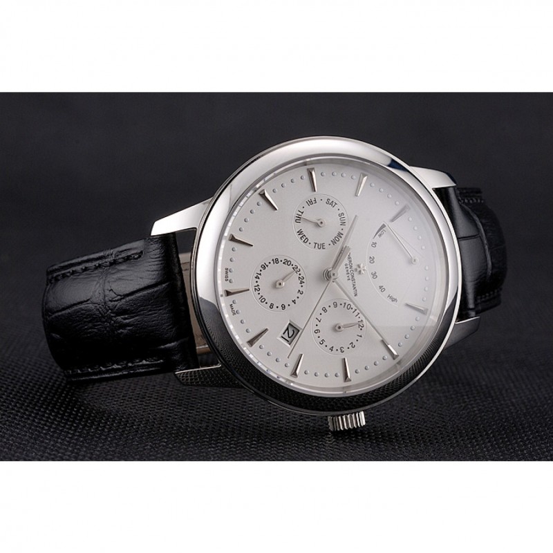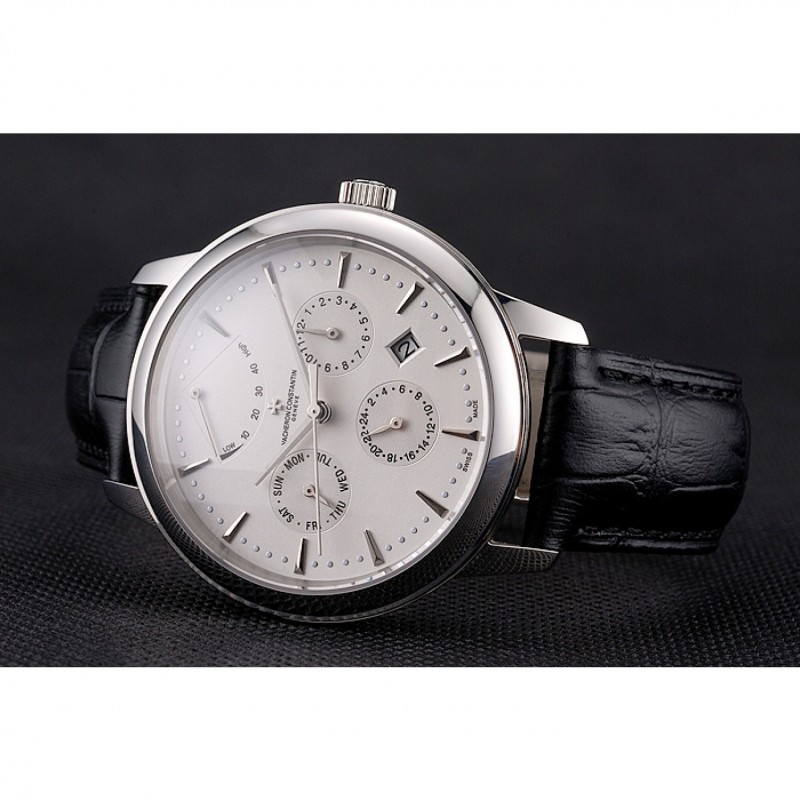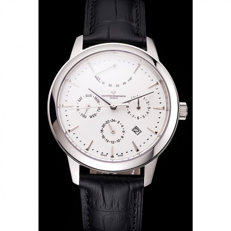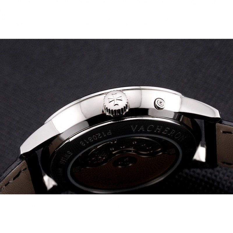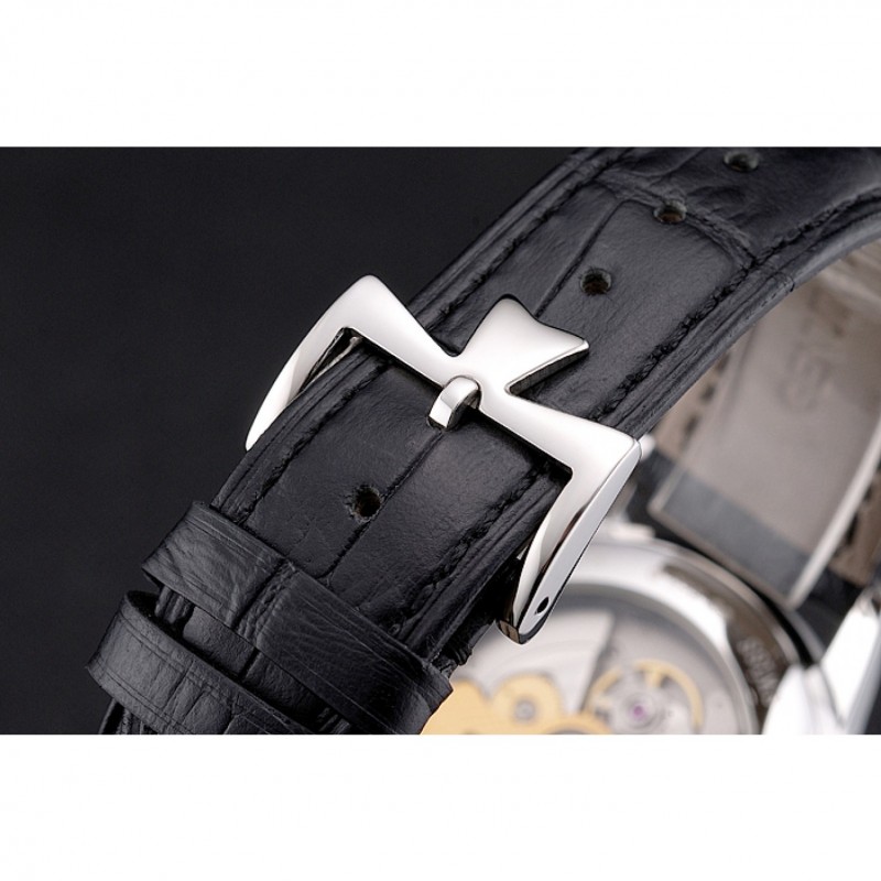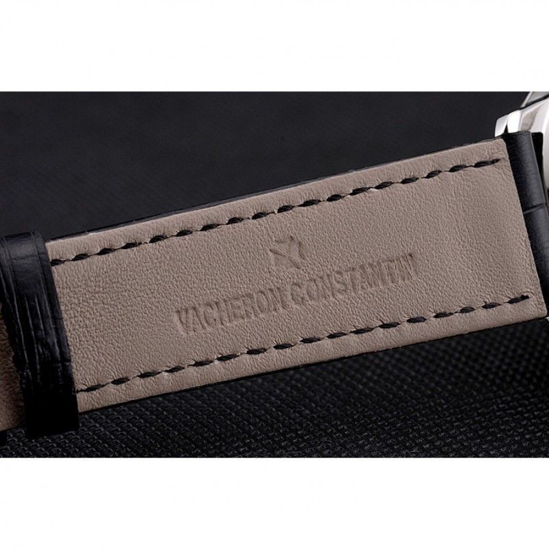 pulsera: logotipo y correa de piel Vacheron Constantin calor en relieve de cocodrilo negro con el logotipo talladas de acero inoxidable pulido gancho hebilla de cierre