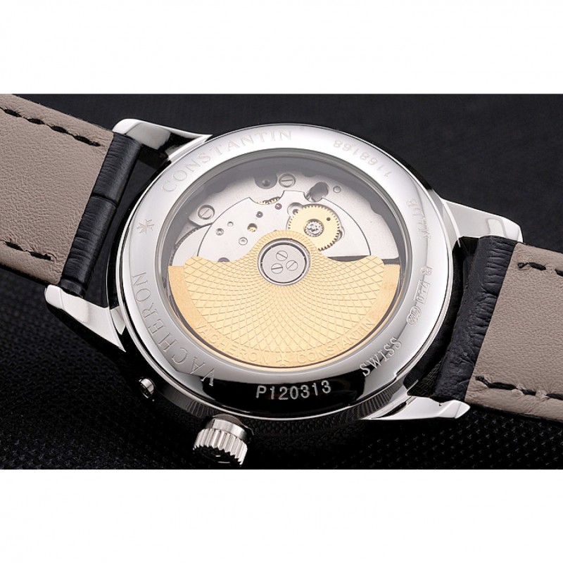 Volver: acero inoxidable pulido complemento en la parte trasera con la mecánica-revelador transparentes centro y grabados Vacheron Constantin