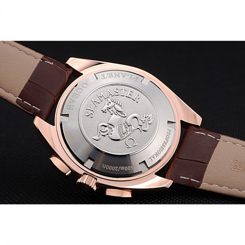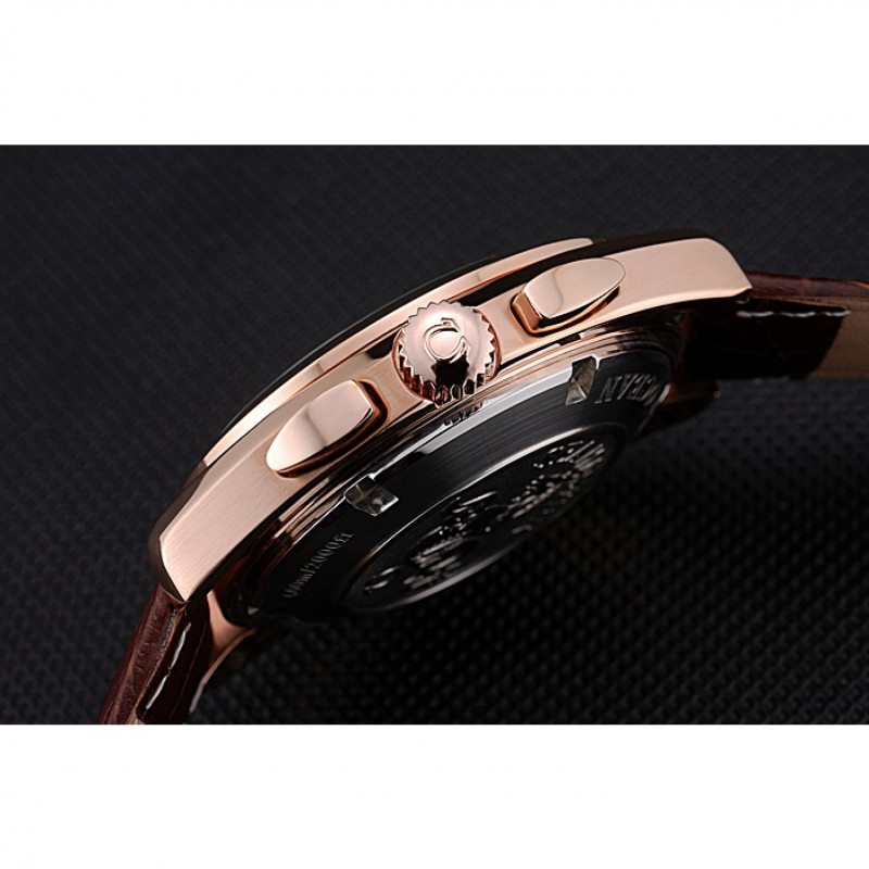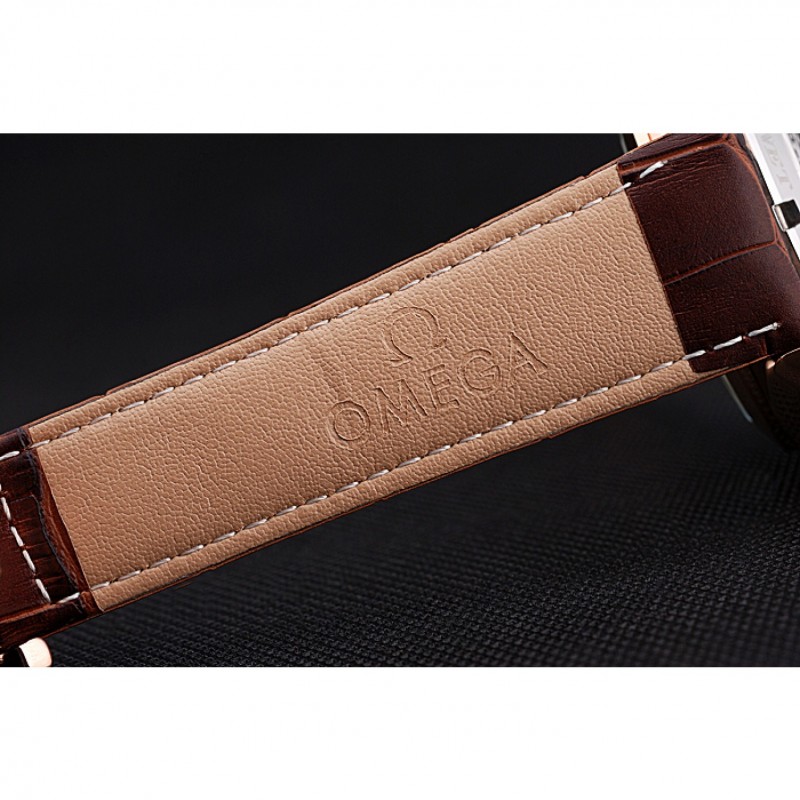 corona: rosa de 18 quilates chapado en oro corona de calado con el logotipo de Omega y una corona de pulsador a cada lado de ella