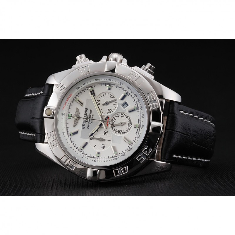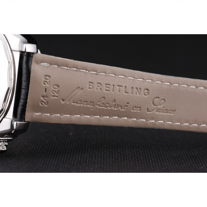 pulsera: Breitling estampada correa de cuero negro con cierre de hebilla de gancho