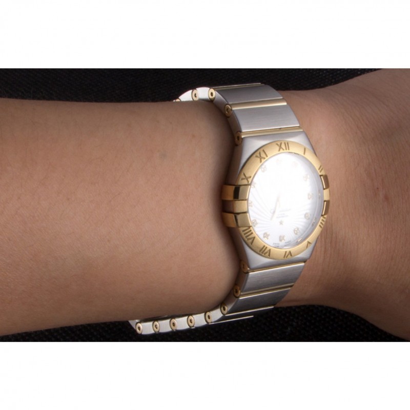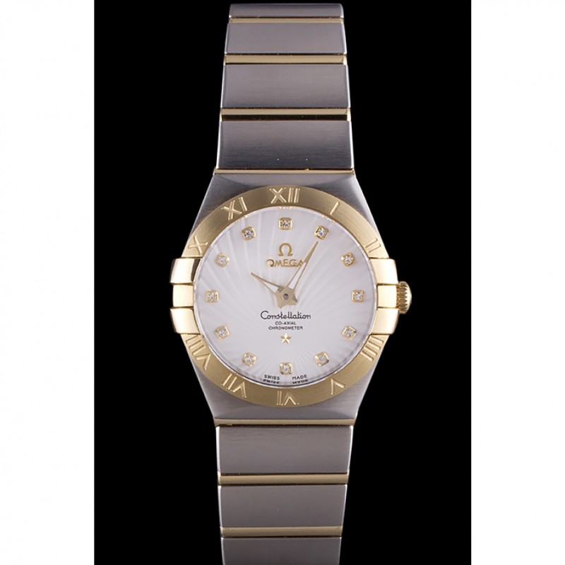 bisel: 18k oro amarillo bisel con hora número romano plateado marcado
