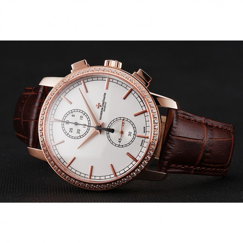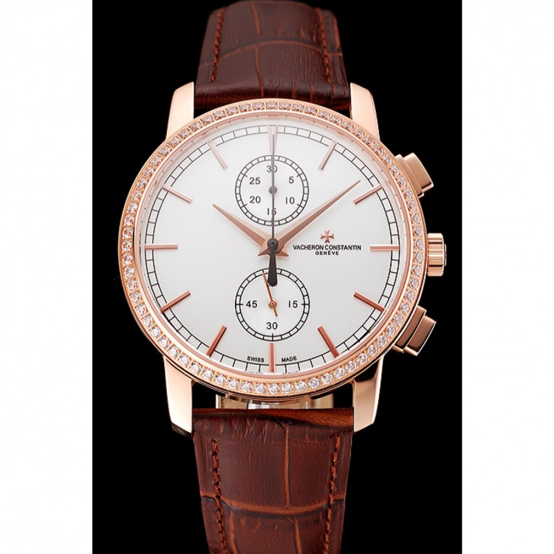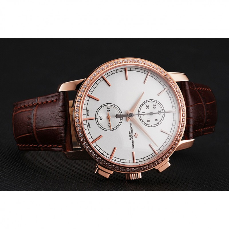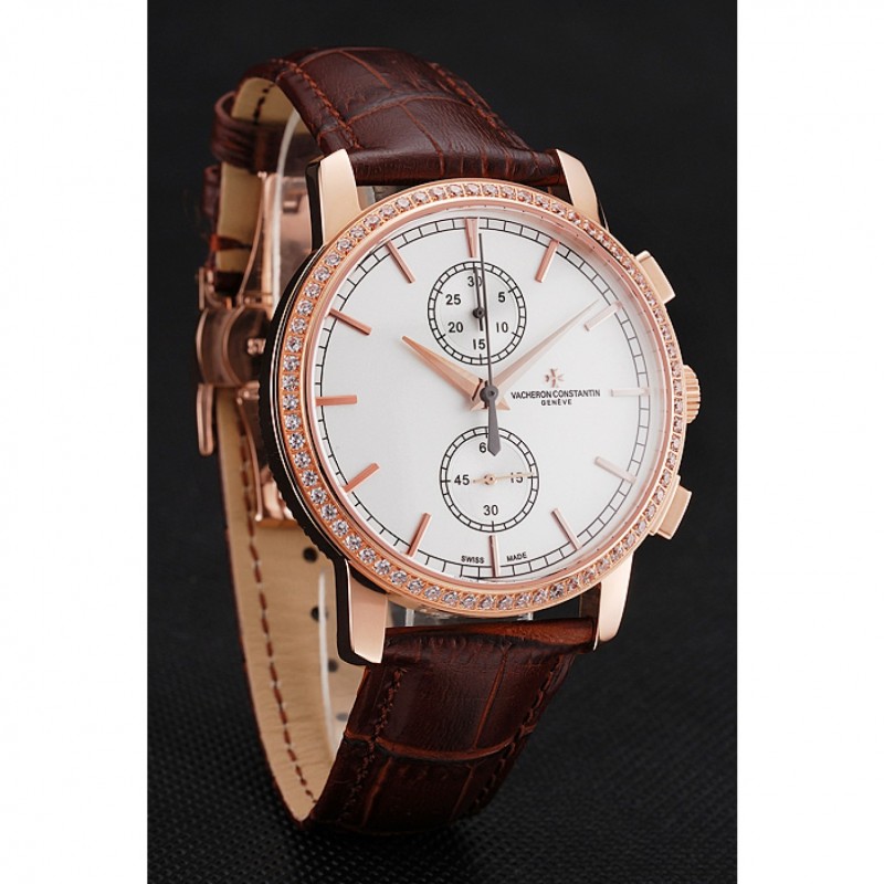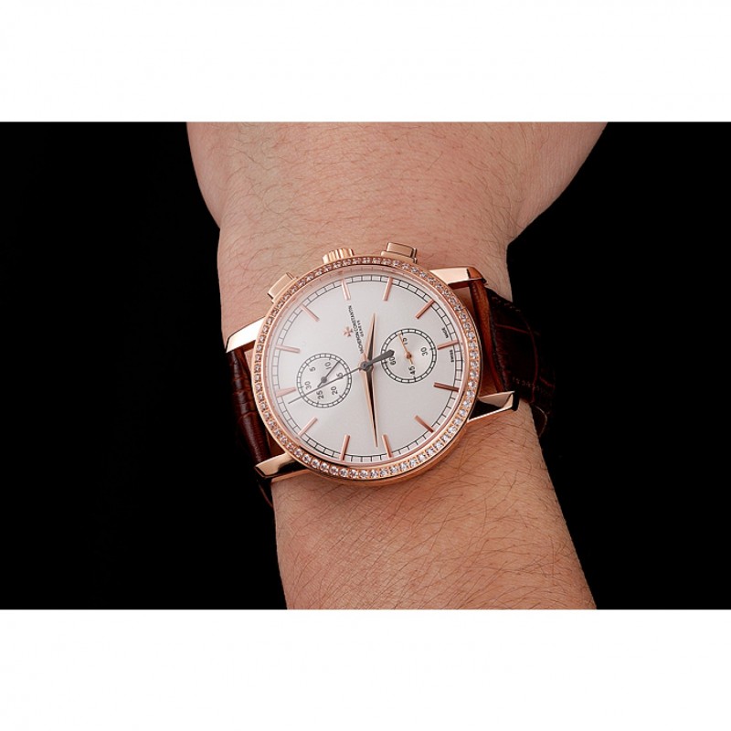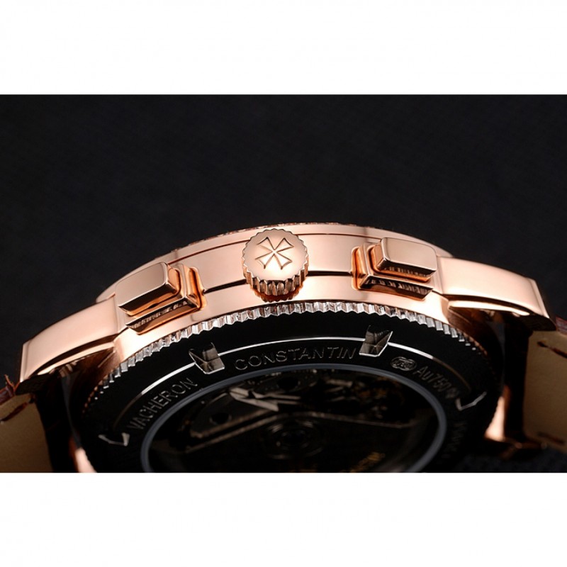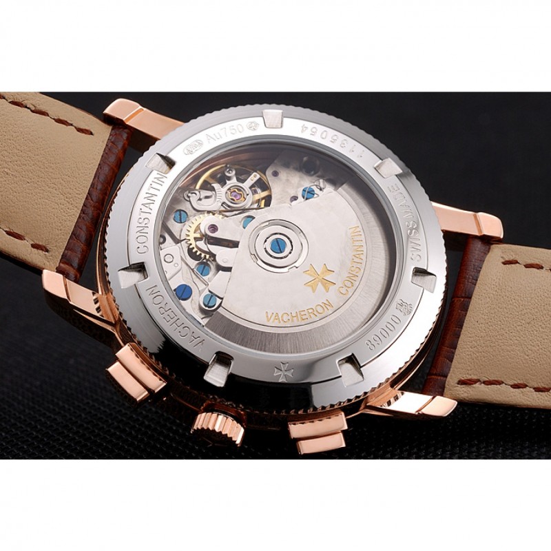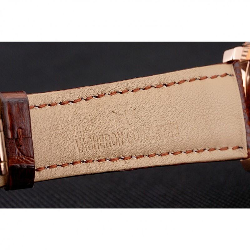pulsera: Vacheron Constantin y en relieve de calor logo cocodrilo marrón correa de cuero con el logo de 18k tallado de oro rosa plateado correa de hebilla de empuje de liberación