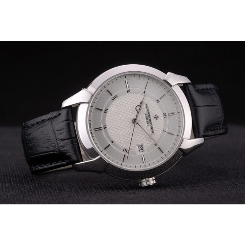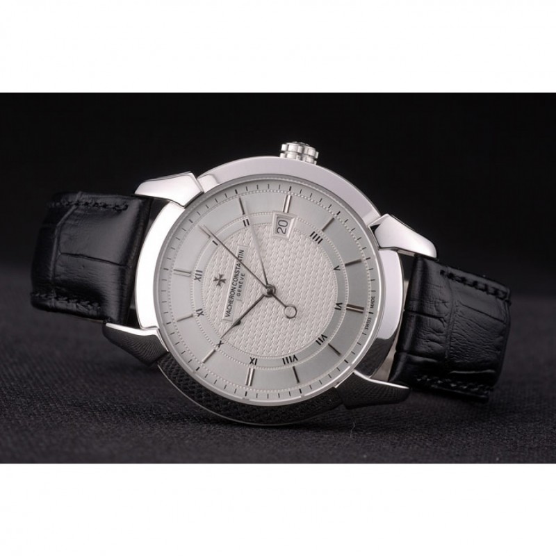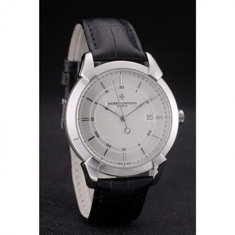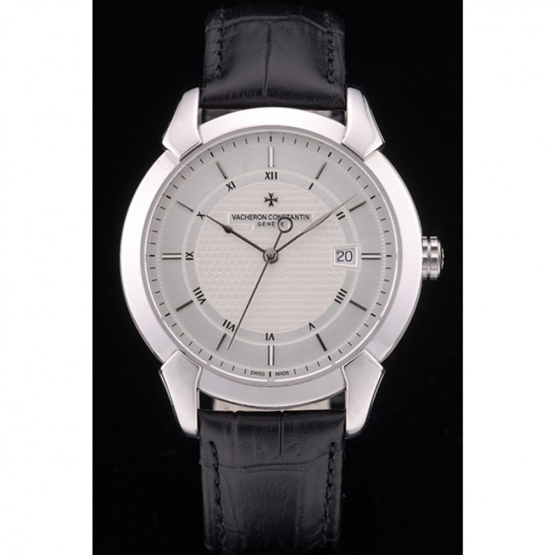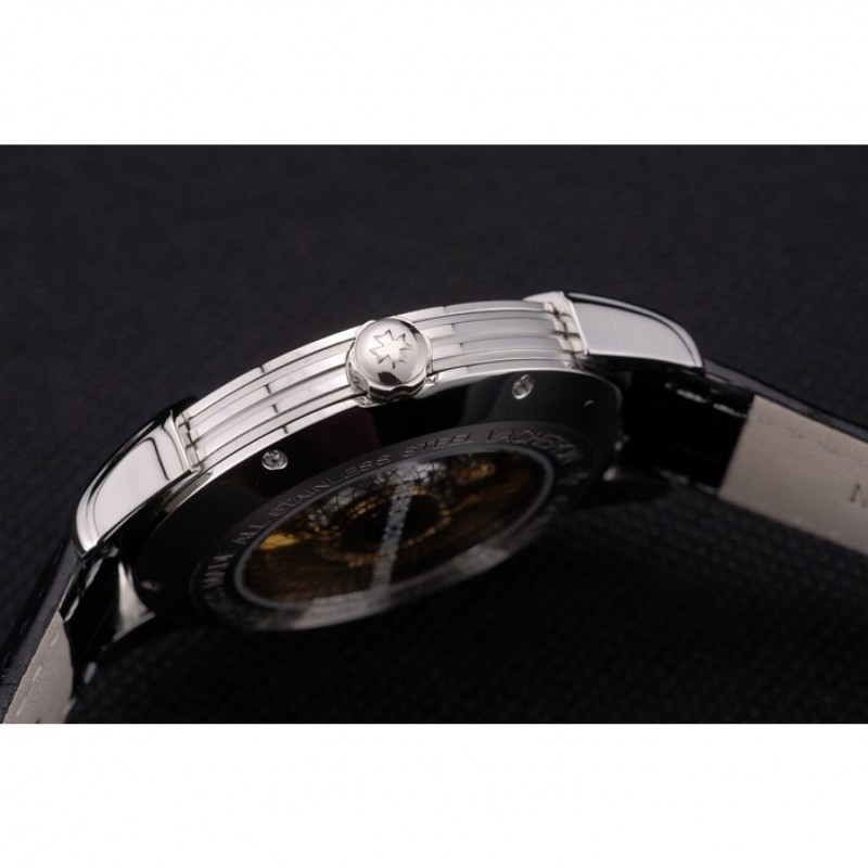 pulsera: El calor en relieve Vacheron Constantin y correa de piel de cocodrilo negro logotipo con pulido logotipo de acero inoxidable gancho hebilla de cierre