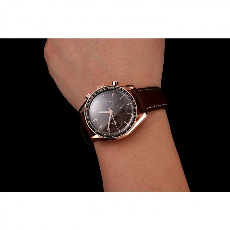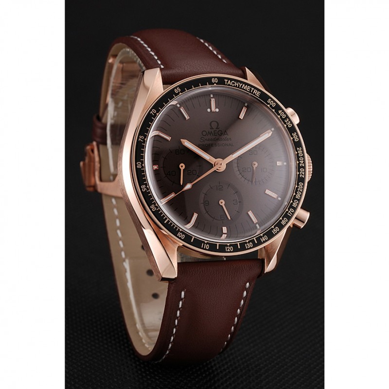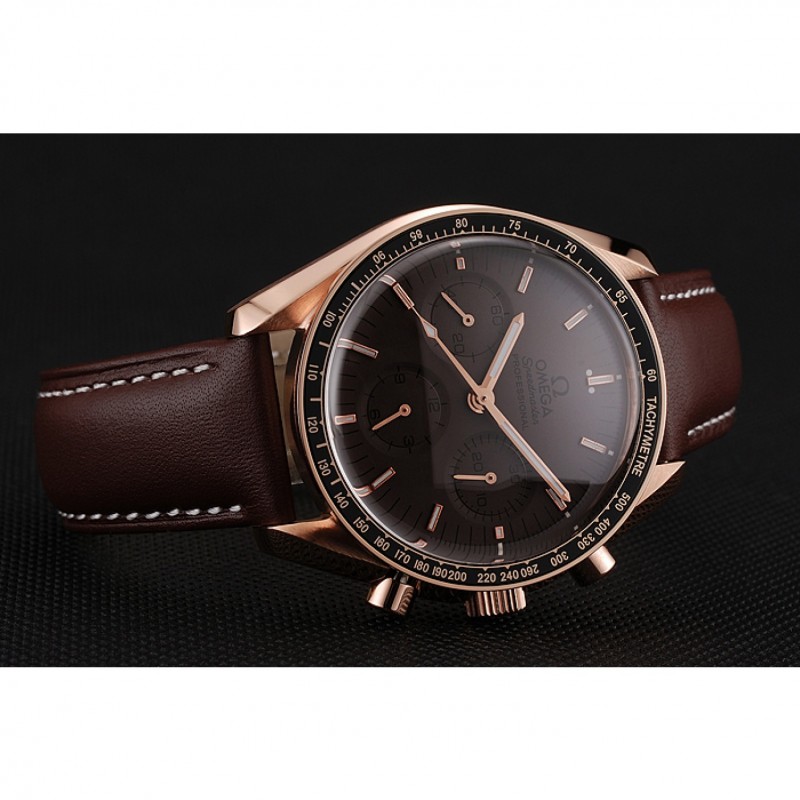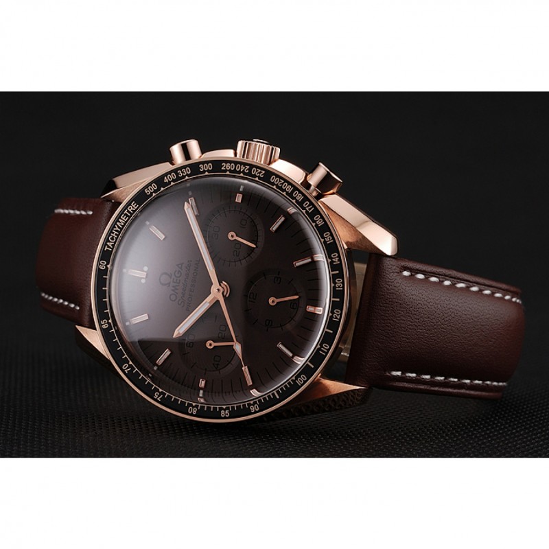 Suizo Omega Speedmaster Professional Brown Dial Caja Oro Brown pulsera de cuero 1453939