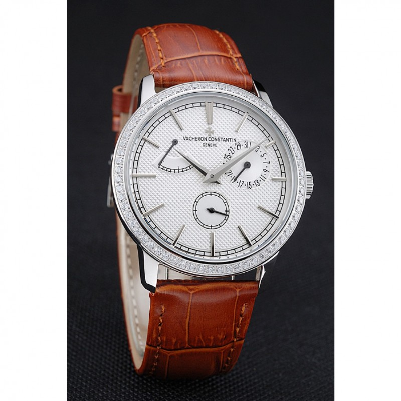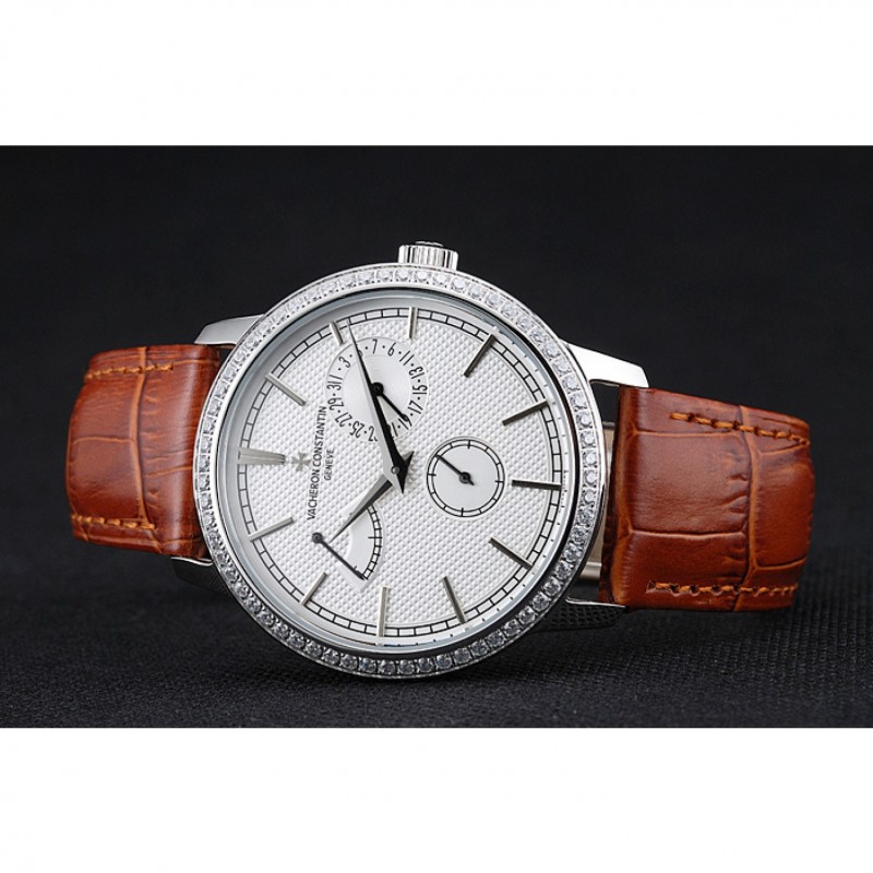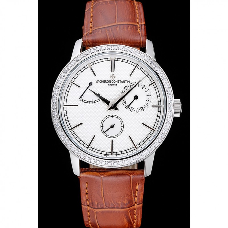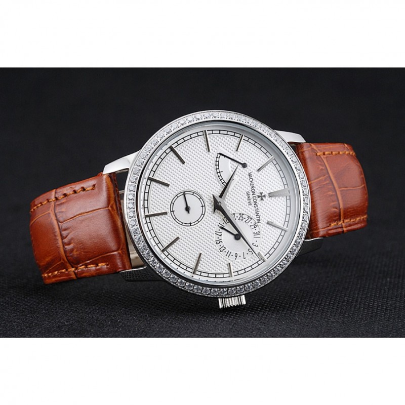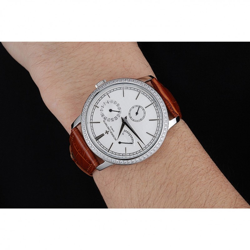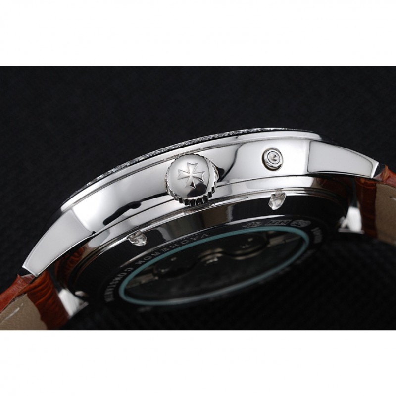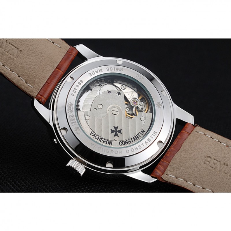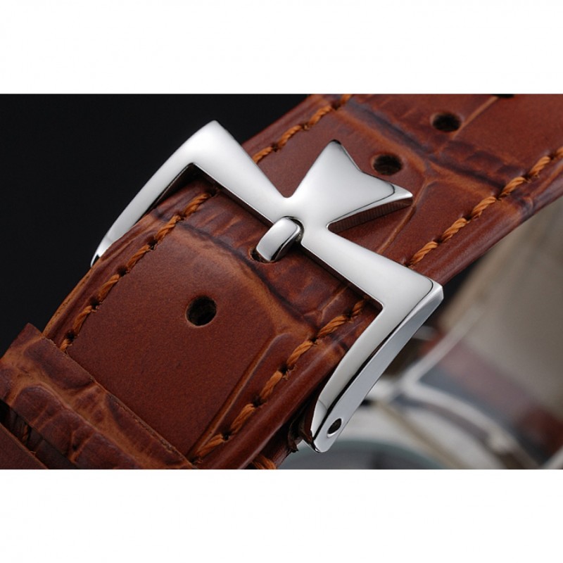 pulsera: Vacheron Constantin correa de piel de cocodrilo marrón en relieve de calor con el logotipo de Vacheron Constantin tallado, pulido de acero inoxidable gancho hebilla de cierre